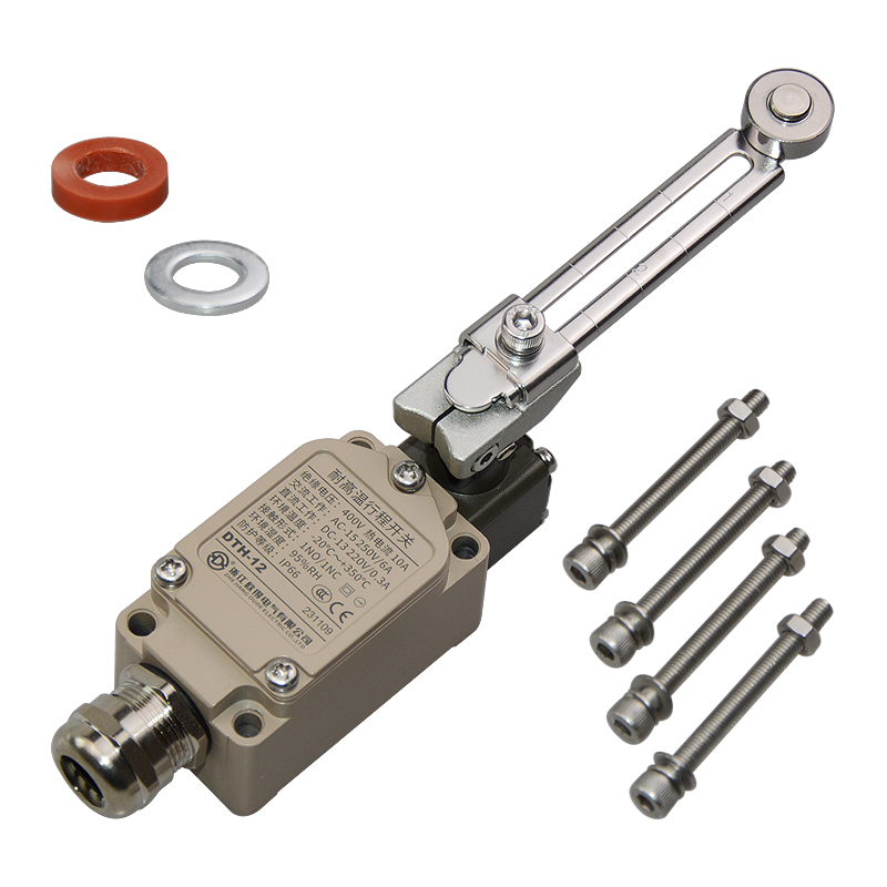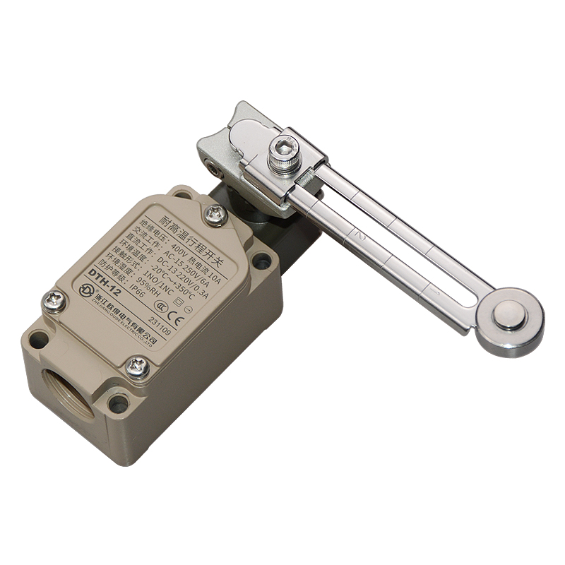 • DTH-12耐高溫行程開關(guān),可調(diào)式滾輪·擺桿型、通用直立型,長壽命2回路限位開關(guān)。適用于鋼鐵、焦化、電廠、紡織、醫(yī)療、化工、鋁材、塑料、玻璃、輪胎等高溫加工機械設(shè)備,作位移電路通斷信號檢測控制。