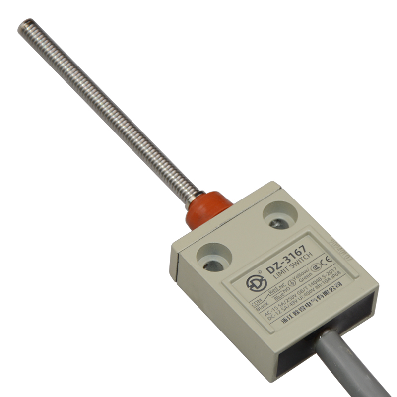 • DZ-3167防水行程開關(guān),盤簧型,萬向式,通用直立型,小型、薄形、IP68防護(hù)等級,樹脂與耐油軟線融合牢固,高度密封性兼具的緊湊型限位開關(guān)。適用于積水、潮濕環(huán)境下的機(jī)械設(shè)備,作位移電路通斷信號檢測控制。