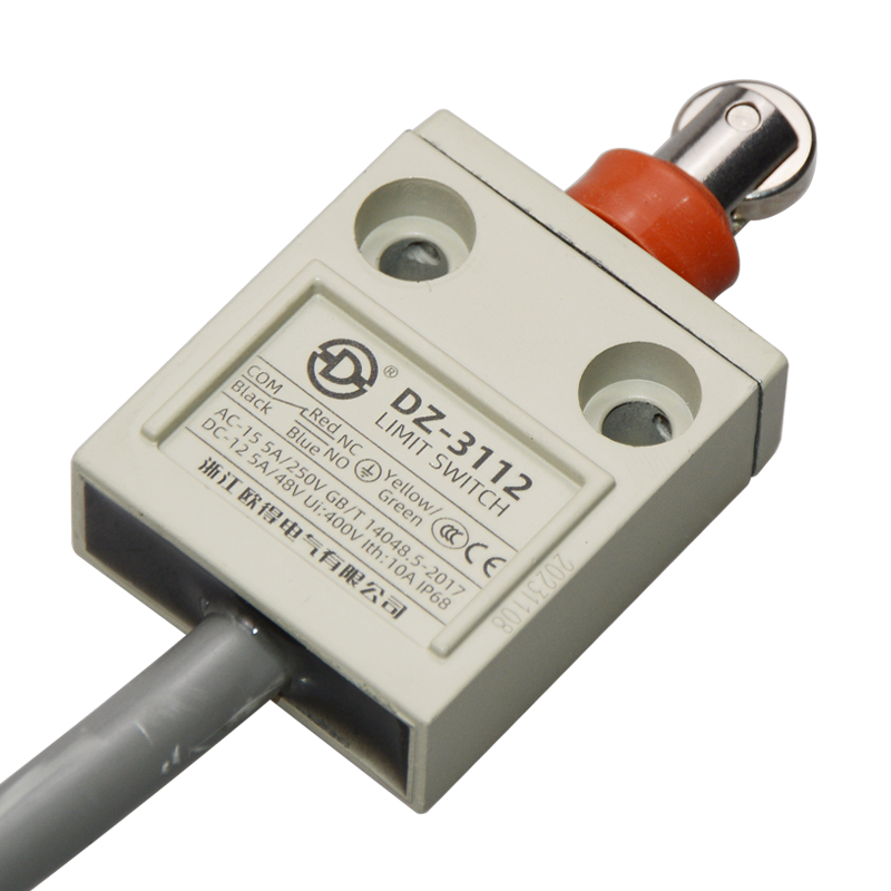 • DZ-3112防水行程開關(guān),密封式滾輪柱塞型,通用直立型,小型、薄形、IP68防護(hù)等級,樹脂與耐油軟線融合牢固,高度密封性兼具的緊湊型限位開關(guān)。適用于積水、潮濕環(huán)境下的機(jī)械設(shè)備,作位移電路通斷信號檢測控制。