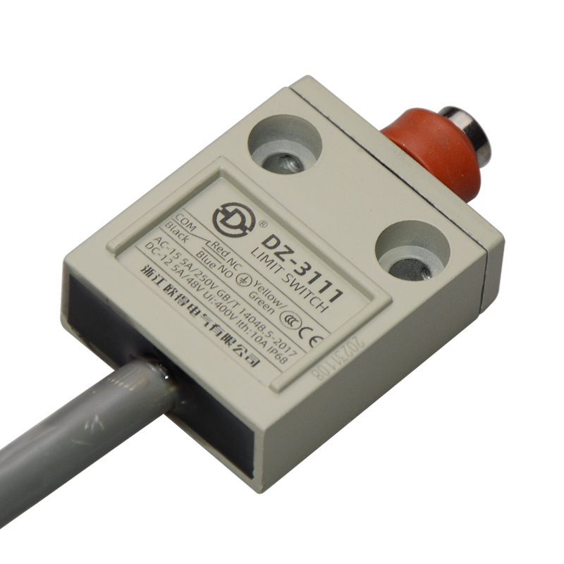 • DZ-3111防水行程開關(guān),密封式針狀柱塞型,通用直立型,小型、薄形、IP68防護(hù)等級(jí),樹脂與耐油軟線融合牢固,高度密封性兼具的緊湊型限位開關(guān)。適用于積水、潮濕環(huán)境下的機(jī)械設(shè)備,作位移電路通斷信號(hào)檢測(cè)控制。