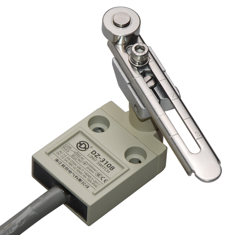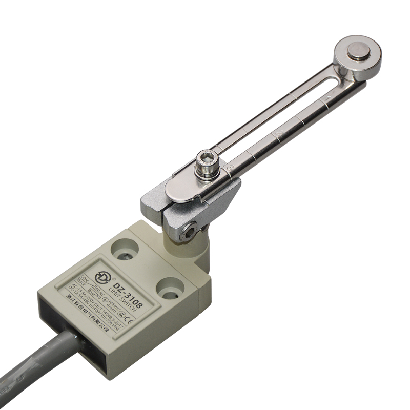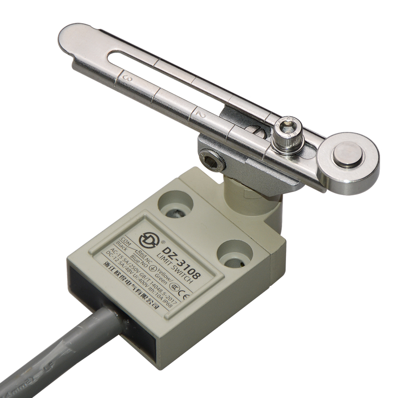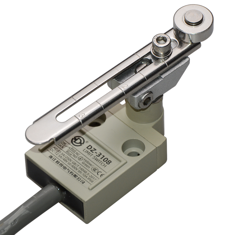 • DZ-3108防水行程開關,可調式滾輪·擺桿型,通用直立型,小型、薄形、IP68防護等級,樹脂與耐油軟線融合牢固,高度密封性兼具的緊湊型限位開關。適用于積水、潮濕環(huán)境下的機械設備,作位移電路通斷信號檢測控制。