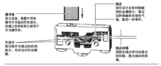 限位開關 用語說明■ 一般用語限位開關: 為保護小型開關不受外力、水、油、塵 埃等的侵害而將其裝入金屬外殼或者塑料外殼中的開關。(以下稱開關) 額定值一般指作為開關特性和性能的保證標準的量, 如額定電流, 額定電壓等, 以特定的條件為前提。 有接點指利用接點的機械開合來實現(xiàn)開關的功能。 接觸形式根據(jù)各種用途構成接點的電氣輸入輸出電路的方式。 樹脂固定(塑封端子)用導線對端子部分完好配線, 通過充填樹脂使該部分固定, 消除暴露在外的帶電部分, 提高密封性的一種方法。 ![]() ■ 與結構、構造相關的用語 ![]() ■ 關于壽命的用語 機械壽命 將過行程(OT)設為規(guī)格值,在未通電狀態(tài)下的開關壽命。 電氣壽命將過行程(OT) 設為規(guī)格值,在額定負載(阻性負載)下的開關壽命。 FP (自由位置)沒有施加外力時驅動桿的位置。 OP (動作位置)向驅動桿施加外力,使可動接點剛從自由位置的狀態(tài)開始反轉時的位置。 TTP (總行程位置)驅動桿到達驅動桿停止檔時的位置。 RP (返回位置)減少對驅動桿的外力,使可動接點剛從動作位置反轉到自由位置狀態(tài)時驅動桿的位置。 OF (動作力)為了從自由位置移動到工作位置所必須給驅動桿施加的力。 RF (回復力)為了從總行程位置移動到回復位置,必須對驅動桿施加的力。 PT (預行程)驅動桿從自由位置到動作位置的移動距離或移動角度。 OT (過行程)驅動桿從動作位置到總行程位置的移動距離或移動角度。 MD (應差行程)驅動桿從動作位置到返回位置的移動距離或移動角度。 TT (總行程)驅動桿從自由位置到總行程位置的移動距離或移動角度。 對目錄中使用的上述規(guī)格用語說明如下。 EN60947-5-1「電氣機械控制電路設備」的EN規(guī)格。和IEC60947-5-1的內(nèi)容相同。