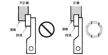 注. 關于擋塊的形狀,應設計成驅動桿反轉時不能碰到另一方的滾珠。