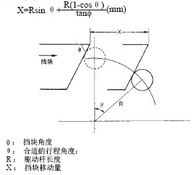 · 對應于合適的行程, 擋塊移動量的表示式如下。