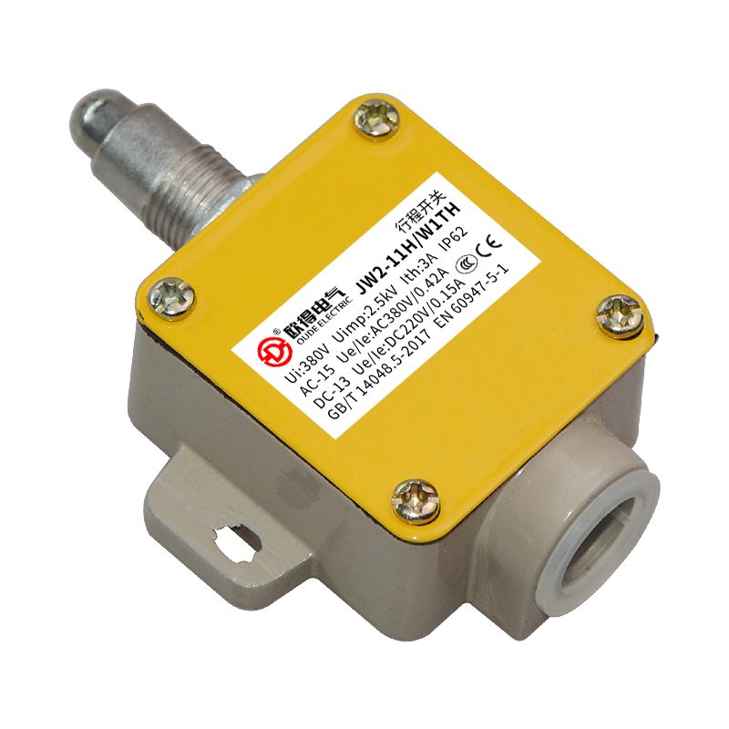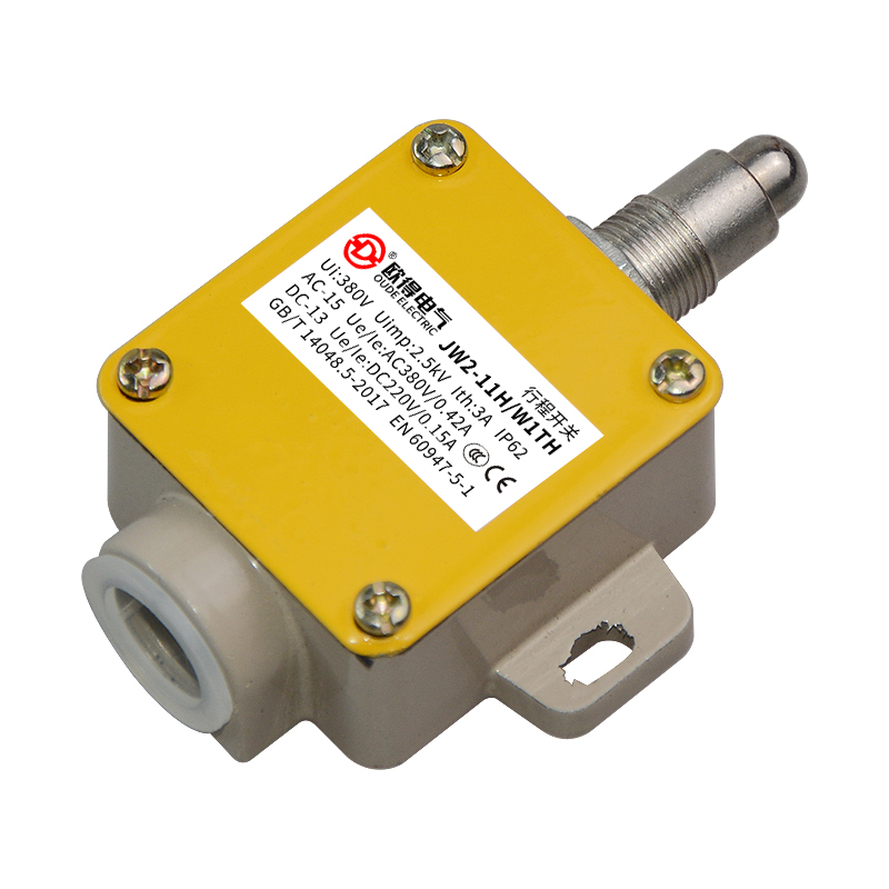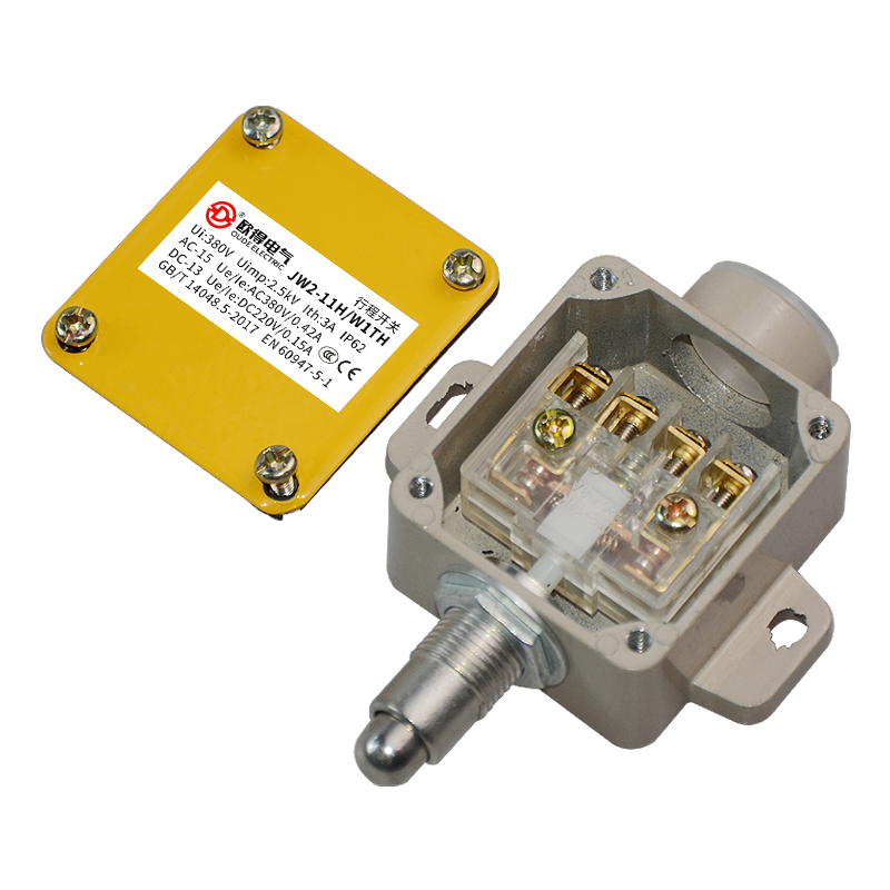 • 行程開關(guān)(JW2-11H/W1TH),柱塞直動(dòng)式。絕緣電壓380伏,發(fā)熱電流3安培,交流工作電壓380伏、電流0.42安培,直流工作電壓220伏、電流0.15安培,防護(hù)等級(jí)IP62。